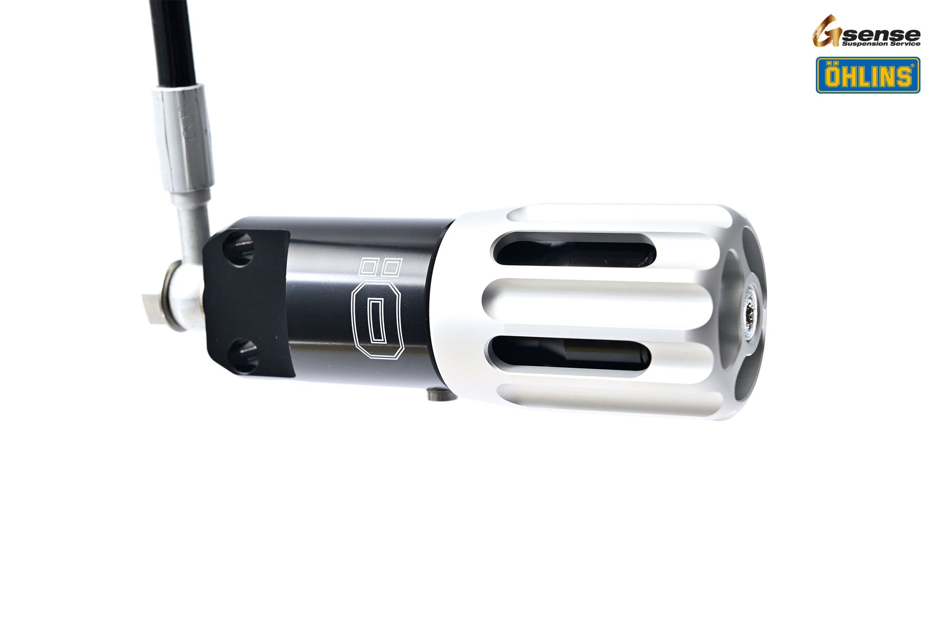 ホースの先にあるリモートダイヤルを操作することでスプリングプリロードを調整できる遠隔式アジャスター。